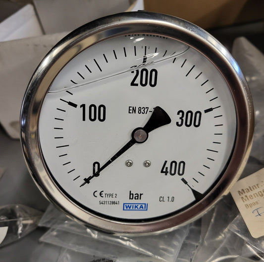 9023410, 213.53.100, WIKA G1/2 analóg nyomásmérő, 400bar, hátsó bemenetes, 100mm külső átmérővel
